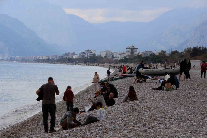 Antalyalılar ve yabancı turistler, yeni yılın ilk hafta sonunu Konyaaltı Sahili'nde değerlendirdi. Aileleri ve sevdikleriyle birlikte sahile gelen vatandaşlar, balık tutma, yürüyüş yapma ve kahvaltı keyfi yaşadı. Yabancı turistler ise havaya aldırış etmeden denize girerek eşsiz bir deneyim yaşadı.