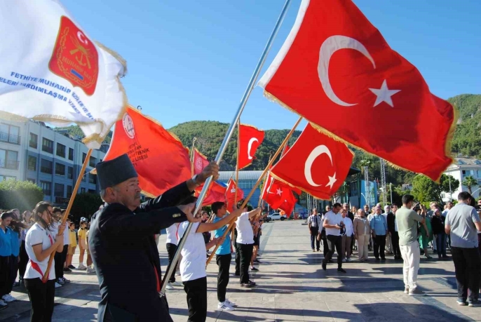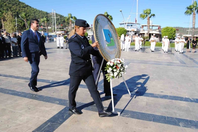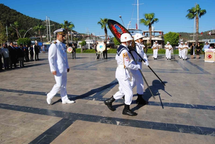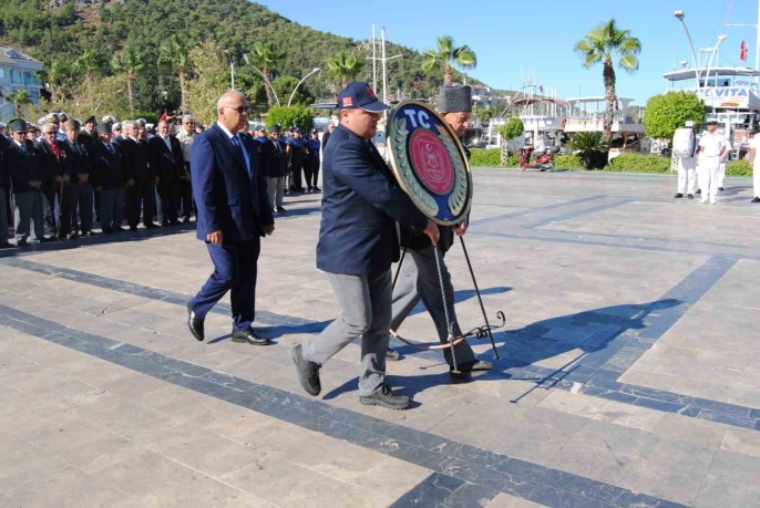 Fethiye Beşkaza Meydanı Atatürk Anıtı önünde gerçekleşen törene, Fethiye Kaymakamı Fatih Akkaya, Garnizon Komutanı Yarbay Onur Gülay, Cumhuriyet Başsavcı Vekili Uğur Baş, Fethiye Muharip Gaziler Ve Şehit Aileleri Yardımlaşma Ve Dayanışma Derneği Başkanı Mahmut Topal, Fethiye İlçe Emniyet Müdürü Salih Murat Kara, İlçe Jandarma Komutanı Yaşar Doğu, Sahil Güvenlik Komutanı Burak Akanpınar, kurum müdürleri, siyasi parti temsilcileri, sivil toplum kuruluşları temsilcileri, öğrenciler ve vatandaşlar katıldı.