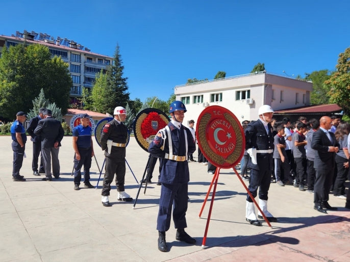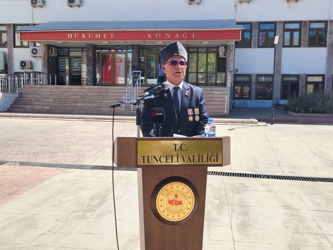 Valilik bahçesinde düzenlenen törende, saygı duruşu ve İstiklal Marşı'nın okunmasının ardından Gazi Mustafa Kemal Atatürk anıtına çelenk sunuldu. Türkiye Muharip Gaziler Derneği Tunceli Şube Başkanı Mehmet Arslan, yaptığı konuşmada gazilerin vatan için verdikleri mücadeleyi anlattı.