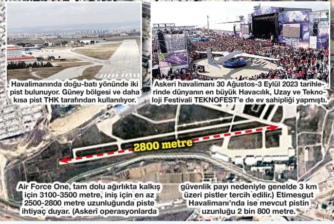 Trump ve diğer devlet başkanlarının uçakları, bu zirve için Etimesgut Havalimanı'na inecek. Ancak mevcut pistin uzunluğu 2 bin 800 metre. Trump’ın uçağının inişi için daha uzun bir piste ihtiyaç duyuluyor. Bu nedenle, Etimesgut Askerî Havaalanı dönüşüm sürecine girdi ve işletmesi Devlet Hava Meydanları İşletmesi'ne (DHMİ) devredildi.