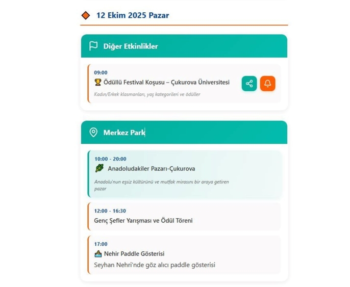 Festivalin üçüncü gününde (12 Ekim Pazar), lezzet tutkunları sabahın ilk ışıklarıyla başlayacak ödüllü festival koşusu ile güne merhaba diyecek. Gün boyunca atölye, söyleşi ve sahne etkinlikleriyle devam etmesi beklenen etkinlikler, gastronomi severlere unutulmaz deneyimler sunacak. Sokak lezzetleri, geleneksel mutfak sırları ve modern gastronomi yorumlarının buluştuğu festivalde; ziyaretçiler hem tat duyularını keşfedecek hem de Adana’nın kültürel mirasıyla gastronomi ekseninde yakınlaşacak. Festivalin kapanışına yaklaşılırken; Merkez Park semalarında yapılan dron gösterisi ile lazer ve havai fişek şovları, Adanalılara renkli görüntüler sundu.