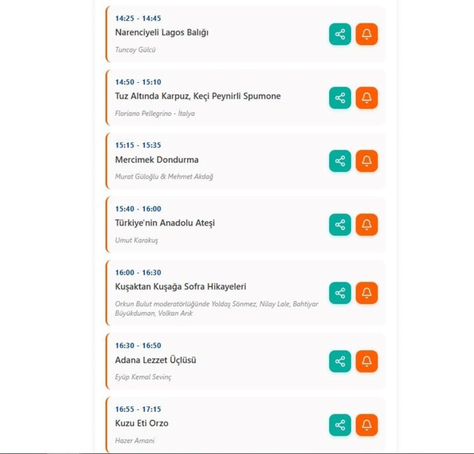 Adana Valiliği'nin ev sahipliğinde bu yıl 9'uncusu gerçekleştirilen Uluslararası Adana Lezzet Festivali, "Kuşaktan Kuşağa" temasıyla devam ediyor. Festivalin son gününe özel olarak 12 Ekim Adana Lezzet Festivali takvimi paylaşıldı.
