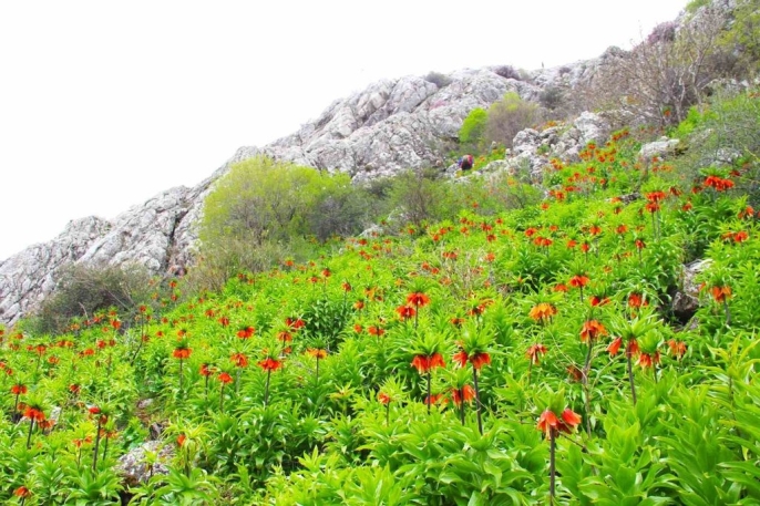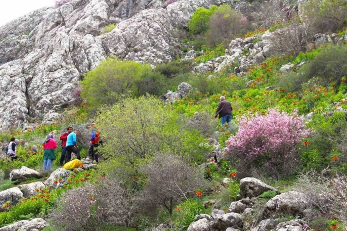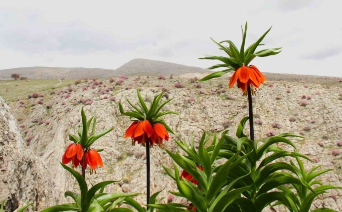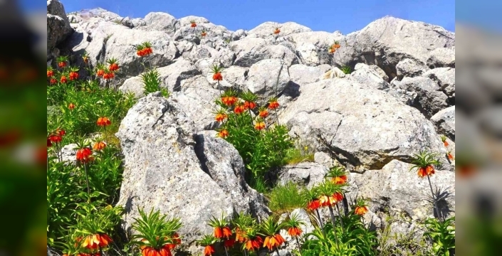 Kahramanmaraş’ın Afşin ilçesinde baharın gelişini müjdeleyen ters laleler, Binboğa Dağları eteklerinde kayalık alanlardan boy göstermeye başladı.