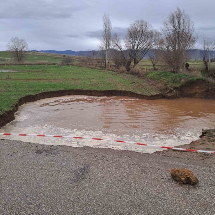 Afyonkarahisar'ın Sandıklı ilçesinde etkili olan şiddetli yağışlar, köy yollarında tehlike yarattı. Hüdai Kaplıcaları ile Örenkaya köyünü birbirine bağlayan yolda, oluşan çökme nedeniyle güvenlik amacıyla ulaşım durduruldu.