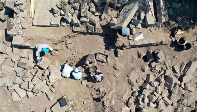 Kazı Başkanı Prof. Dr. Yusuf Sezgin, bu yıl tiyatronun yaklaşık 30 metre batısında, kayalıkların kıyısında ve surun dibinde yer alan, daha önce kazısı yapılmamış gizemli bir tapınakta araştırma yürüttüklerini açıkladı. Helenistik Dönem'e tarihlenen ve iki küçük odadan oluşan yapının, 1886'da Aigai'ye gelen Alman araştırmacıların bulduğu yazıta göre tanrıça Demeter'e adandığını belirten Sezgin, Demeter'in antik dönemde bolluk ve bereketin sembolü olduğunu vurguladı. Aigai gibi kıraç arazilerde tarımsal arazinin sınırlı olması nedeniyle burada yaşayan topluluğun Demeter'e özel önem verdiğini belirten Sezgin, tapınağın 1960'lı yıllarda yoğun kaçak kazılardan zarar gördüğünü ve defineciler tarafından tahrip edildiğini, ancak içinden çok sayıda buluntu çıkarıldığını söyledi. Bu buluntular arasında tanrıçaya sunulmuş adak eşyaları, özellikle de minyatür hydrialar (su kapları) dikkat çekiyor. Sezgin, yaklaşık bin civarında minyatür hydria tespit ettiklerini ve bu buluntuların Aigai halkının Demeter'e gösterdiği önemi ortaya koyduğunu ifade etti.
