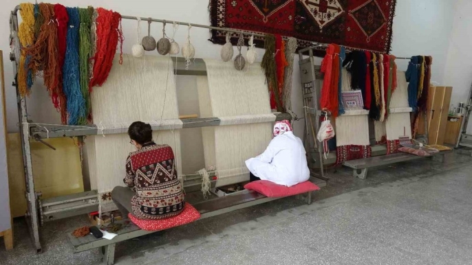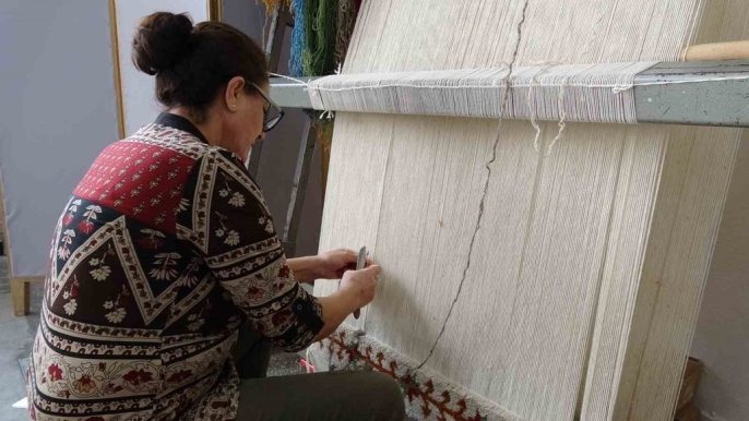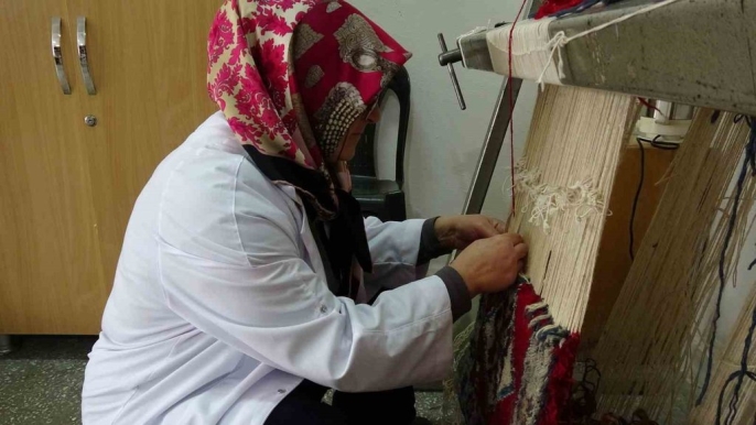 Kursiyerler, ilmek ilmek dokudukları halılarla hem meslek öğreniyorlar hem de gelir elde ediyorlar. Sultan Döğer,