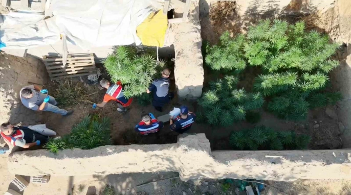 Aksaray'da dron operasyonu: 301 kök kenevir ele geçirildi