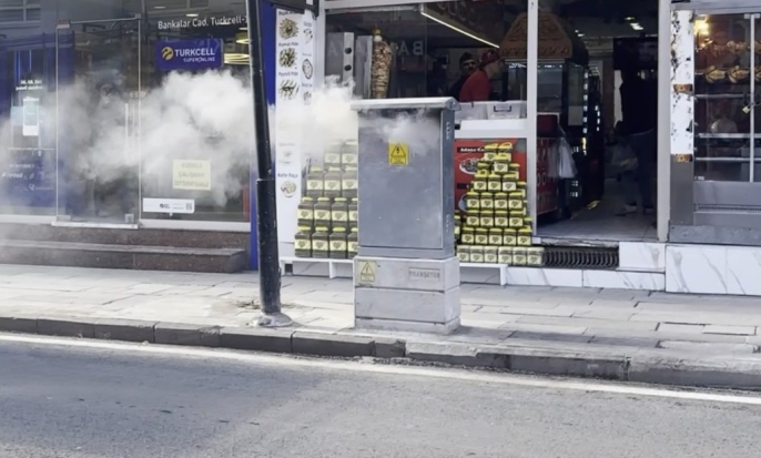 Aksaray'ın Bankalar Caddesi'nde, kaldırım üzerinde bulunan bir elektrik panosunda şase nedeniyle yangın çıktı. Olay, çevredeki vatandaşlar arasında paniğe yol açarken, itfaiye ekipleri hızla müdahale ederek alevleri kontrol altına aldı.