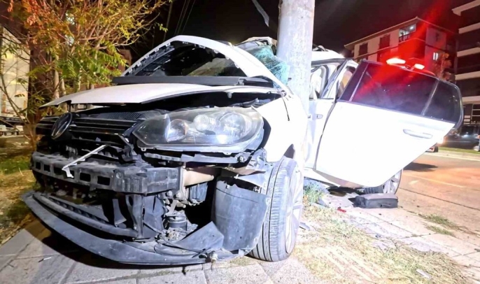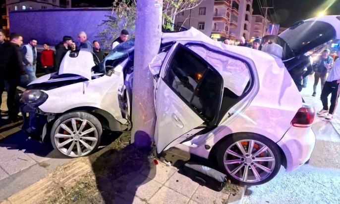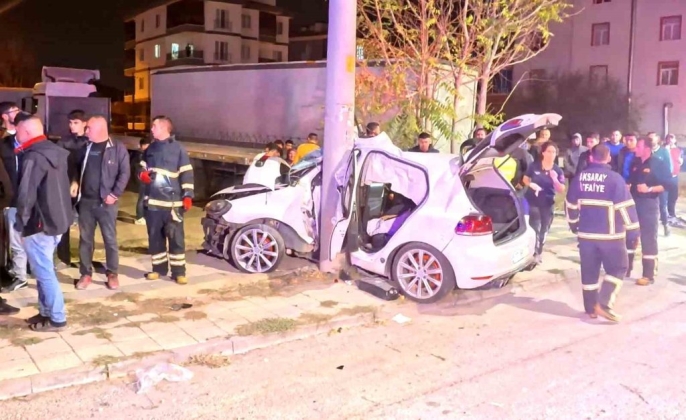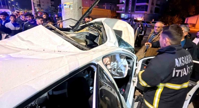 Aksaray'da feci kaza: Elektrik direğine saplanan araçta 2 kişi ağır yaralandı!