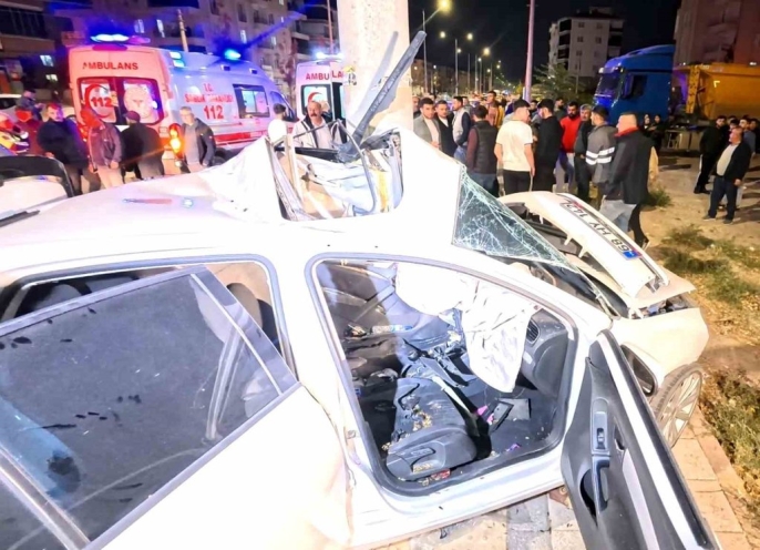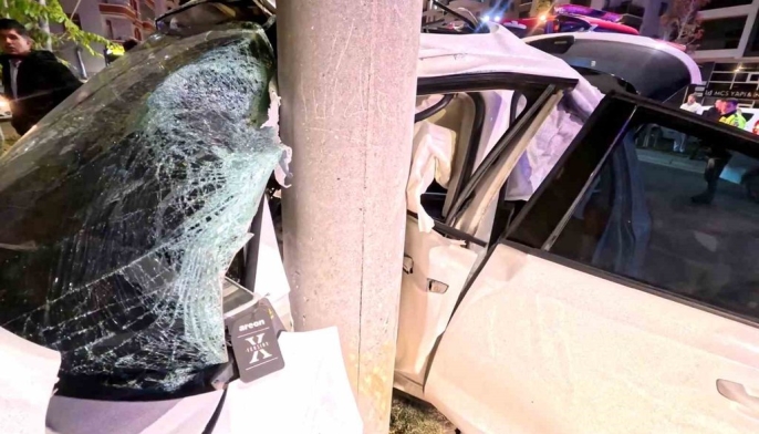 Aksaray'da dün akşam saatlerinde meydana gelen korkunç trafik kazasında, direksiyon hakimiyetini kaybeden sürücünün aracı, kaldırım üzerindeki elektrik direğine çarparak adeta ona yapıştı.