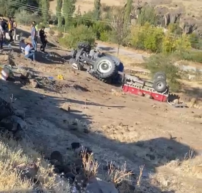 Aksaray'da traktör devrildi: Baba ve oğlu ağır yaralı