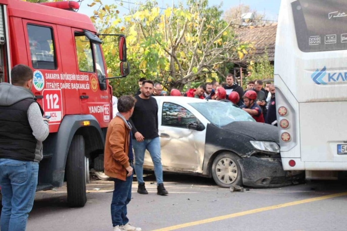 Sakarya'nın Akyazı ilçesi Ada Caddesi Vakıf Mahallesi'nde yürekleri ağızlara getiren bir trafik kazası yaşandı. İddialara göre, U.K. yönetimindeki 54 S 2135 plakalı servis midibüsü, önünde aniden yavaşlayan 54 AFG 030 plakalı otomobile arkadan çarptı. Bu ilk çarpışmanın ardından yaşananlar ise tam bir kabusa dönüştü.