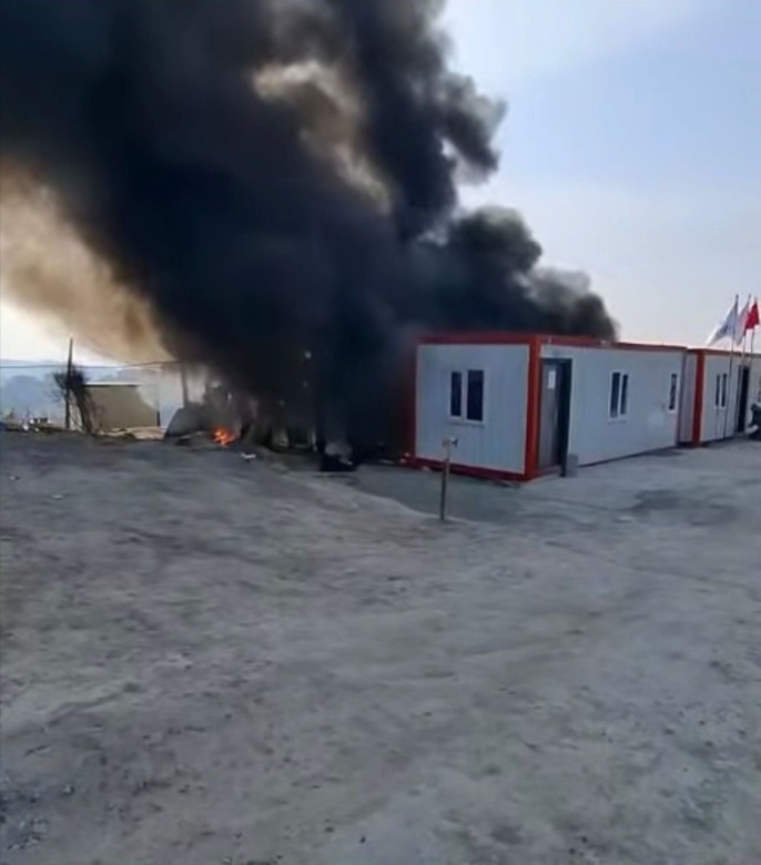 Yemek hizmeti veren yüklenici firmaya ait, beş konteynerden oluşan yemekhane bölümünde başlayan yangın hızla yayıldı. İhbar üzerine olay yerine sevk edilen itfaiye ekipleri, yangını kısa sürede kontrol altına alarak söndürdü. Yangında konteynerler kullanılamaz hale gelirken, olay yerine gelen jandarma ekipleri konuyla ilgili soruşturma başlattı.