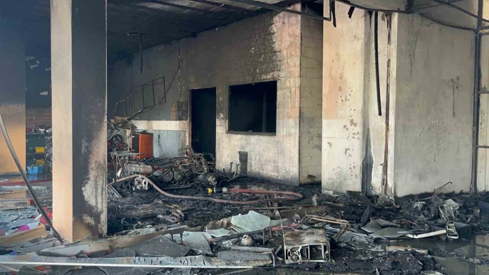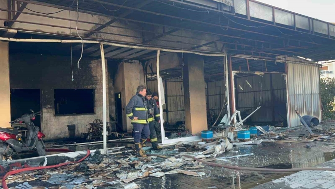 Alanya'da motosiklet servisinde yangın: 10'dan fazla motosiklet küle döndü