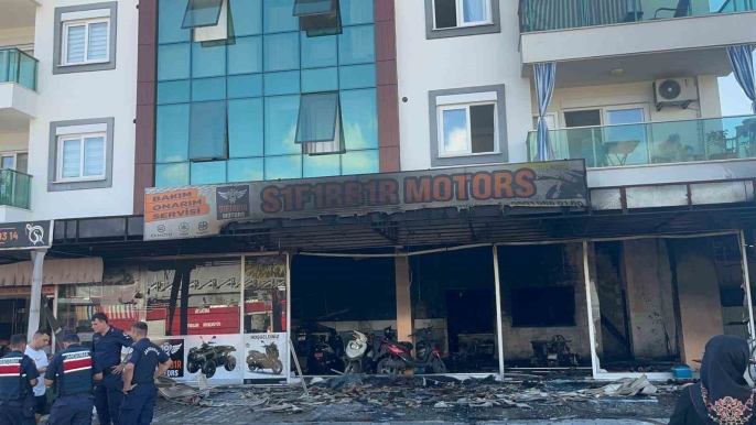 Antalya'nın Alanya ilçesinde bir motosiklet servisinde çıkan yangın, 10'dan fazla motosikleti kullanılamaz hale getirdi.