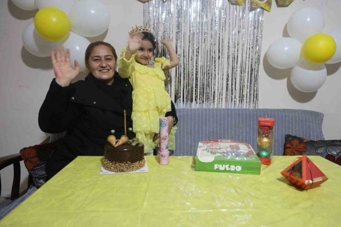 Hatay’da depremde ailesini kaybeden 4 yaşındaki Alye Dağlı, doğum gününü kutlarken babaannesi Aliye Dağlı gözyaşlarına hakim olamadı.