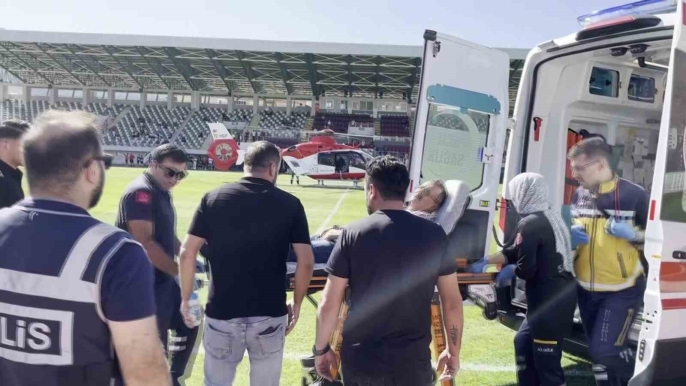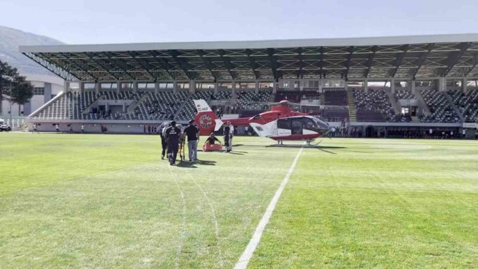 Amasya'da futbol maçı öncesi ambulans helikopter indi