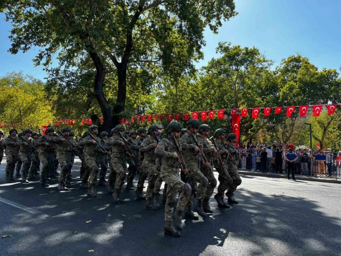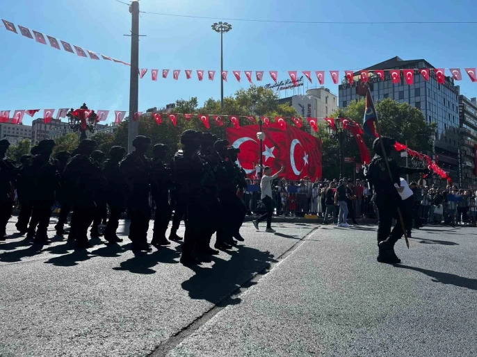 Mustafa Kemal Atatürk'ün büyük boy posteri ve Türk bayrağını taşıyan askerlere, Kara, Deniz ve Hava Kuvvetleri Komutanlıkları, Türk Silahlı Kuvvetleri Armoni Mızıkası ve Jandarma Genel Komutanlığı'ndan oluşan Karma Bando takımı eşlik etti. Mehteran takımı da yürüyüşe katılırken, Kurtuluş Savaşı döneminin askeri üniformalarını giyen bir bölük de kortejde yer aldı. Atlı birlikler ise töreni izleyen vatandaşların büyük ilgisini çekti.
