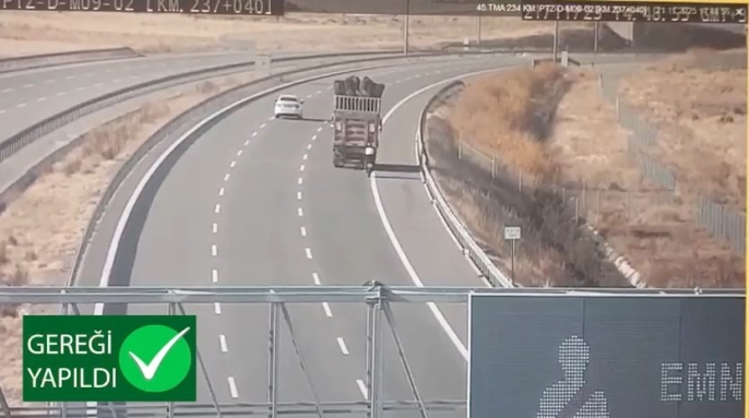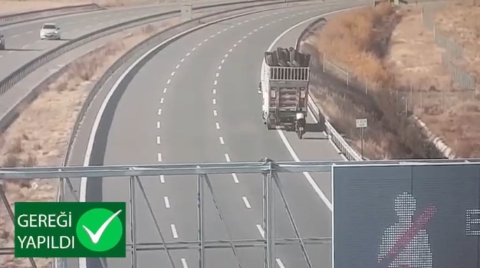 Ankara Niğde otoyolunda, benzini biten bir motosiklet, yoldan geçen bir kamyon tarafından çekildi. Bu tehlikeli yolculuk, otoyolda bulunan güvenlik kameralarına anbean yansıdı.