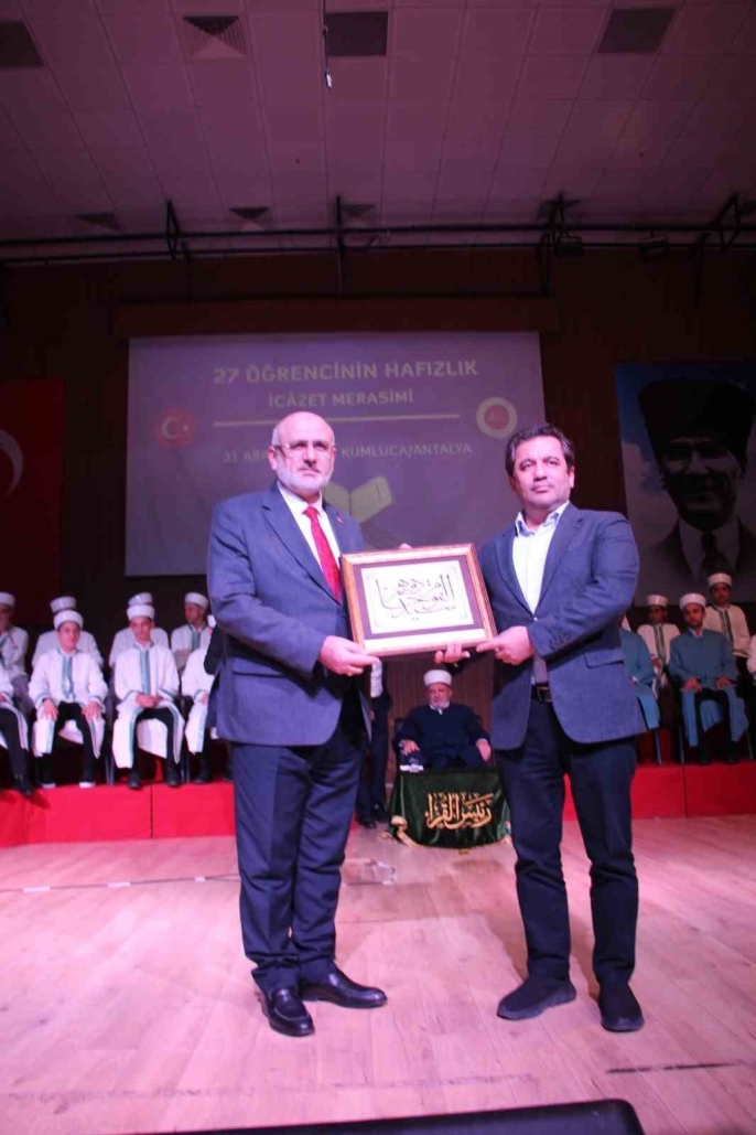 Antalya'nın Kumluca ilçesinde, İlçe Müftülüğü tarafından düzenlenen hafızlık icazet programında 27 öğrenci, eğitimlerini başarıyla tamamlayarak icazet aldı.
