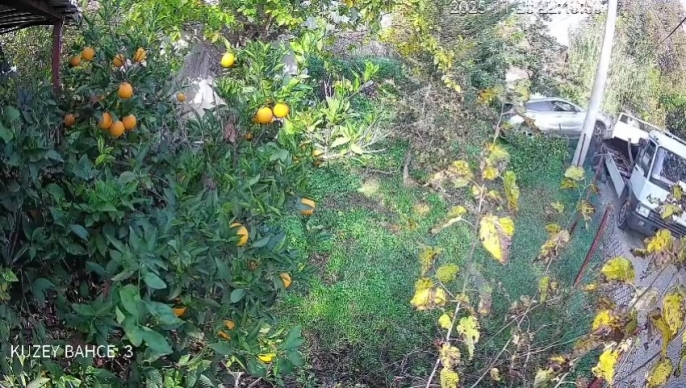 Çelik halatla çekiciye yüklenmeye başlanan otomobil, sürücüsü tarafından geri viteste unutuldu ve aniden gaza basılmasıyla hızla çekicinin rampasına çıktı. Açık konumdaki rampadan yan taraftaki bahçeye uçan araç, dramatik görüntüler oluşturdu. Olayın tüm detayları güvenlik kamerası tarafından kaydedildi.