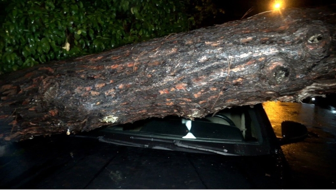 Sarı alarmın verildiği Antalya'da etkili olan şiddetli yağış ve rüzgar, daha önce de tehlike arz ettiği iddia edilen 10 metrelik bir ağacın devrilmesine neden oldu. Olayda iki araçta ve bir binada hasar meydana gelirken, şans eseri can kaybı yaşanmadı.