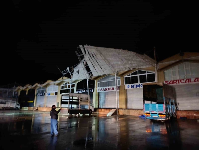 Antalya'nın Demre ilçesinde etkili olan hortum, bir işyerinin çatısını yerinden söktü. Kaş ilçesinde ise şiddetli sağanak sele neden oldu.