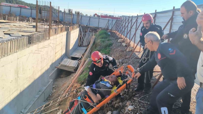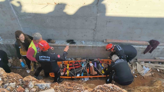 Antalya'da inşaat işçisi toprak kayması sonucu 3 metreden düştü