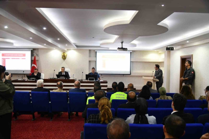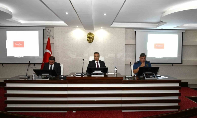 Vali Hayrettin Çiçek başkanlığında yapılan toplantıda, emniyet, jandarma ve milli eğitim birimlerinin sunumlarıyla okul güvenliği, asayiş, taşıma ve servis güvenliği konuları ele alındı. Toplantıda alınacak tedbirler detaylı bir şekilde değerlendirildi.