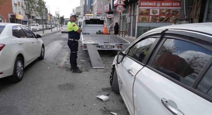 Sinirlerine hakim olamayan otomobil sürücüsü, aracını motosiklet sürücüsünün üzerine sürdü. Park halindeki bir servis aracı ile otomobil arasında sıkışan motosiklet sürücüsü yaralandı. Olay anı, güvenlik kamerası tarafından kaydedildi. Görüntülerde, otomobilin duraksayan motosiklete çarpması ve sürücünün iki araç arasına sıkışarak yaralanması net bir şekilde görülüyor.