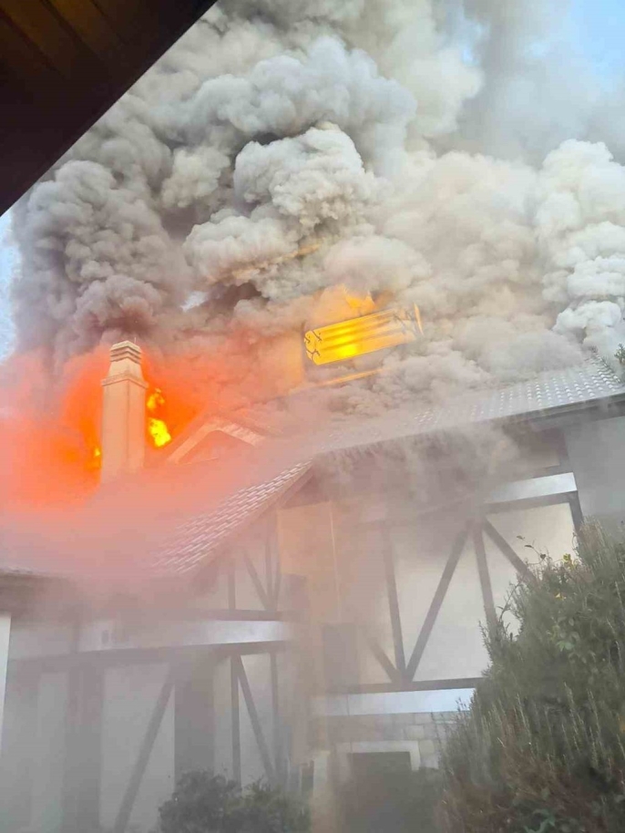 Beykoz'da ünlü oyuncu Aslıhan Karalar'ın yaşadığı villanın çatı katında sabah saat 07.00 sıralarında bilinmeyen bir nedenle yangın çıktı.