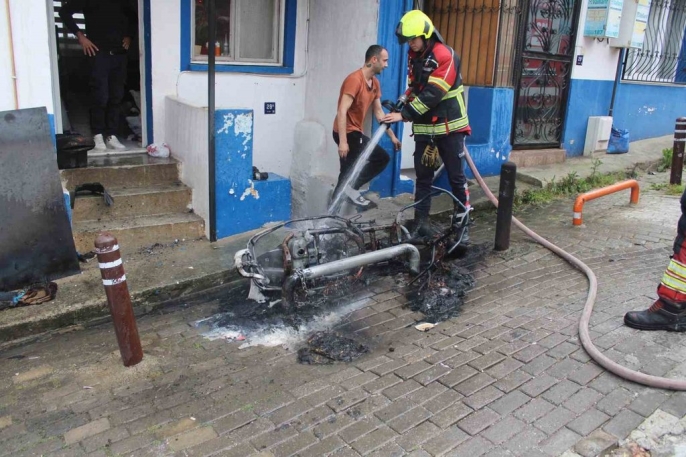 Yangın, Efeler ilçesi Köprülü Veysipaşa Mahallesi 1602 Sokak üzerinde meydana geldi. Y.Ş.'nin evinin önünde tamir ettiği motosiklet, henüz bilinmeyen bir sebepten dolayı alev aldı. Alevler kısa sürede büyüyerek motoru sardı.