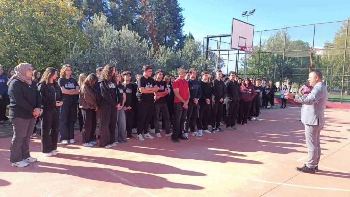 Aydın Sosyal Bilimler Lisesi öğrencileri, 23 Ekim Afet Risklerini Azaltma Günü'nü bir deprem tahliye tatbikatıyla idrak etti.