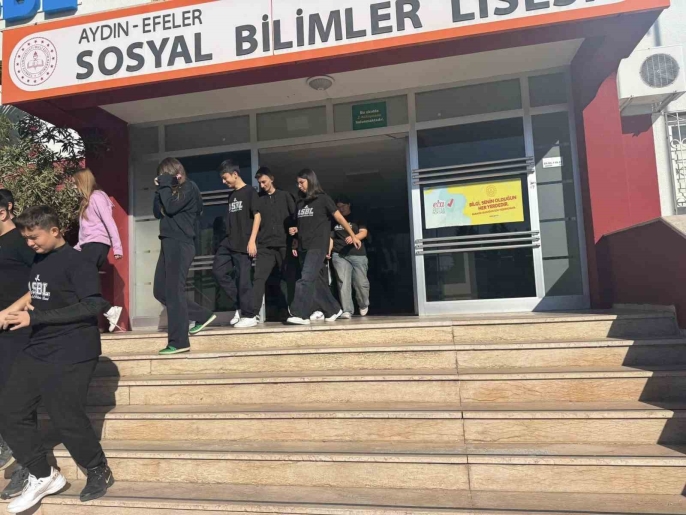 Aydın Sosyal Bilimler Lisesi'nde deprem tahliye tatbikatı yapıldı