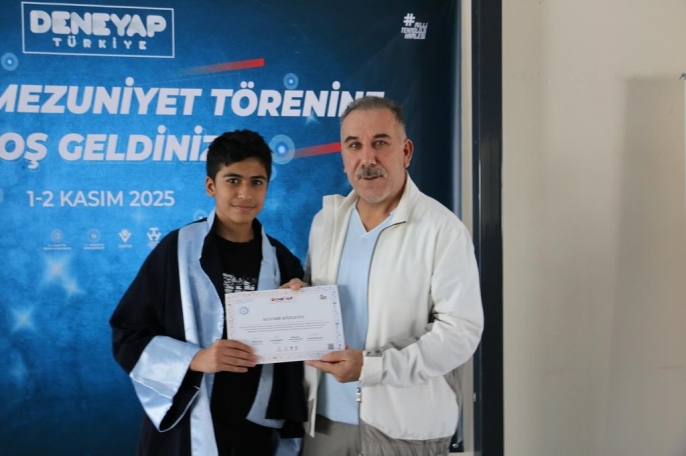 On binlerce öğrenciye geniş bir yelpazede teknoloji eğitimi sunan Deneyap Teknoloji Atölyeleri, Aydın Gençlik Merkezinde de mezuniyet töreniyle taçlandı. 3 yıllık zorlu eğitimin ardından 59 öğrenci, hazırladıkları birbirinden yenilikçi projelerle dikkat çekti. Törende, öğrencilere diplomaları Aydın Gençlik ve Spor İl Müdürü Serhat Yığmatepe tarafından takdim edildi.