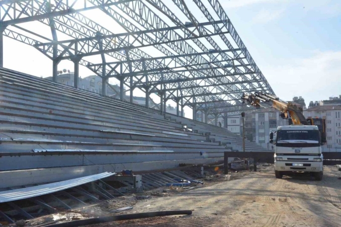 Altı bin seyirci kapasitesine sahip yeni stadyum, profesyonel liglerde maçlara ev sahipliği yapabilecek nitelikte tasarlanmış. Yıl sonu teslimi için şantiyede 5 iş makinesi, 6 kamyon ve 35 kişilik bir ekip gece gündüz çalışıyor; çelik tribünlerin çoğu tamamlanmış olup, şimdi ince işçilik evresine geçilmiş durumda.