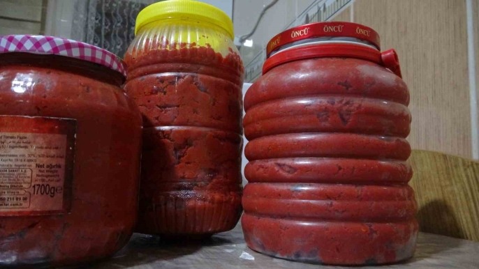 Hatice Yıldız, kışlık salça yapımının ayrıntılarını anlattı: "Tarladan domatesleri alıyoruz, yıkayıp kabuklarından arındırıyoruz. Kazanda odun ateşinde pişiriyoruz, süzgeçten geçiriyoruz, blender'dan geçiriyoruz ve tekrar süzgeçten geçiriyoruz. Sonra tepsilere boşaltıp güneşte kurutuyoruz. 5-6 gün sonra bidonlara doldurup, tuzla serin yerde muhafaza ediyoruz."