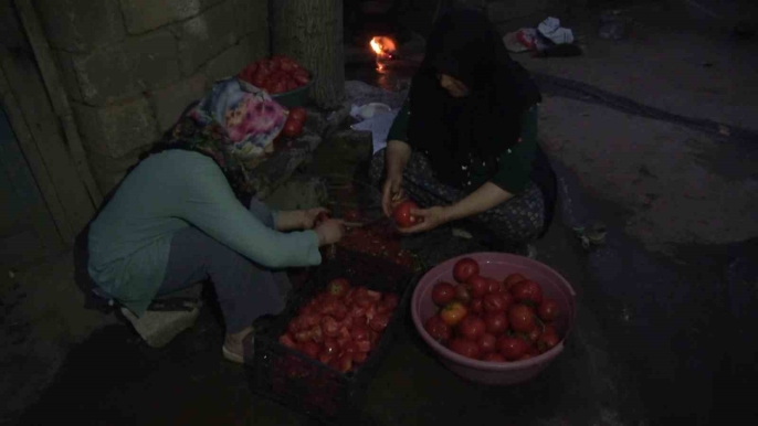 Bayburt'un Aydıntepe ilçesinde sonbaharın gelişiyle birlikte evlerde kışlık salça hazırlıkları hız kazandı. İlçede yaşayan kadınlar, tarladan topladıkları domatesleri salça haline getirmek için yoğun bir şekilde çalışıyorlar.