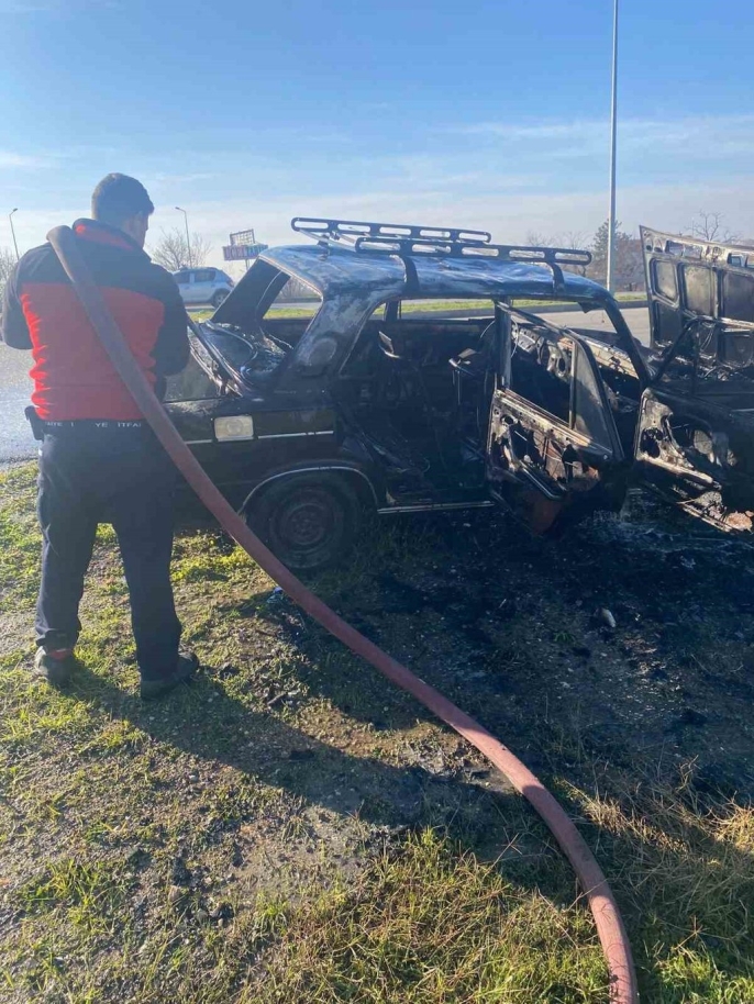 Kırklareli'nin Babaeski ilçesinde seyir halindeki bir otomobilde yangın çıktı. Yangın, D100 Karayolu üzerindeki kavşak mevkiinde meydana geldi.