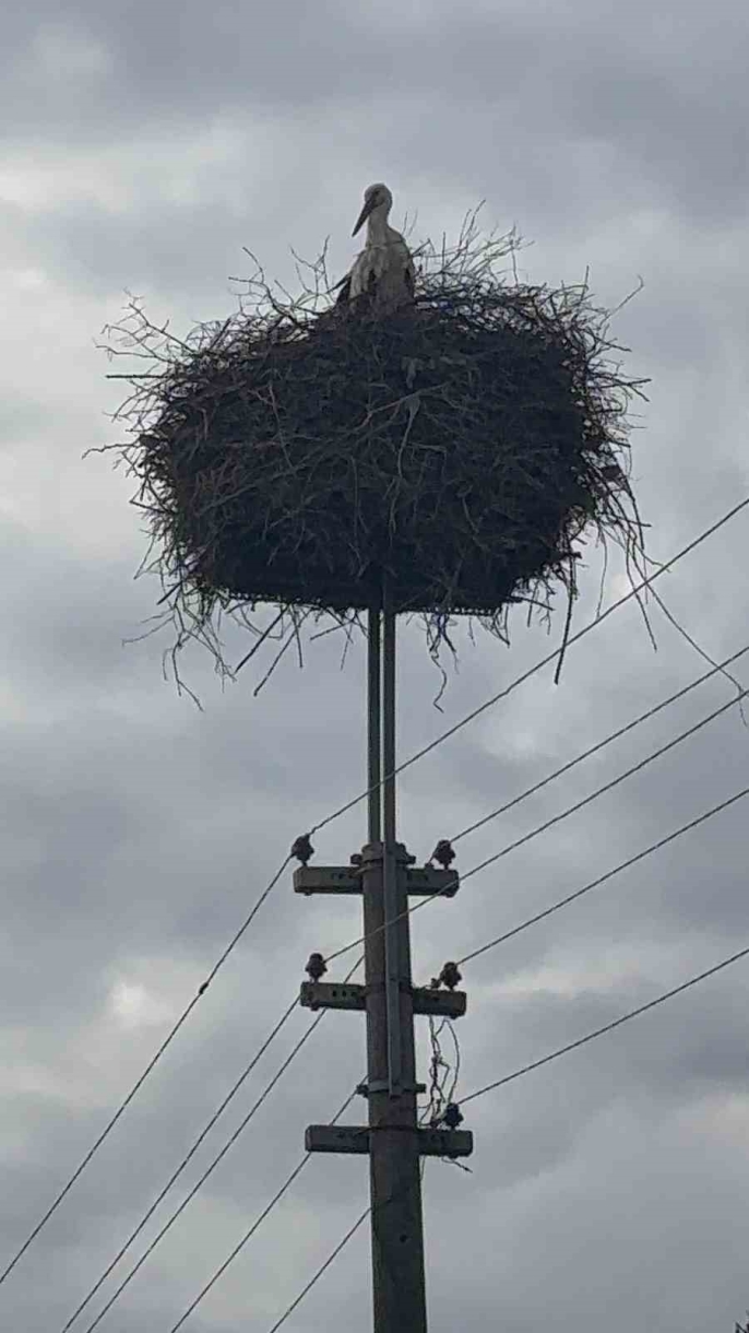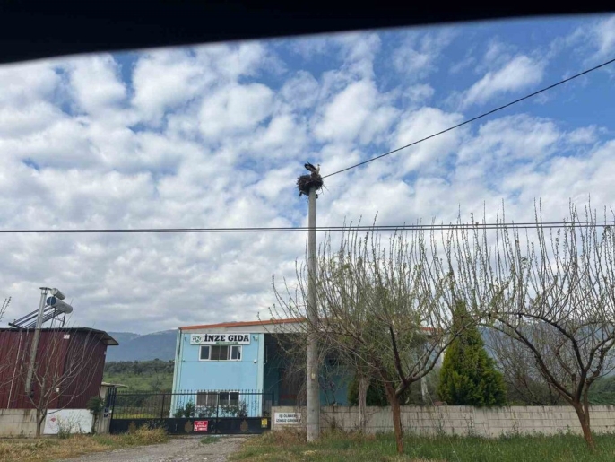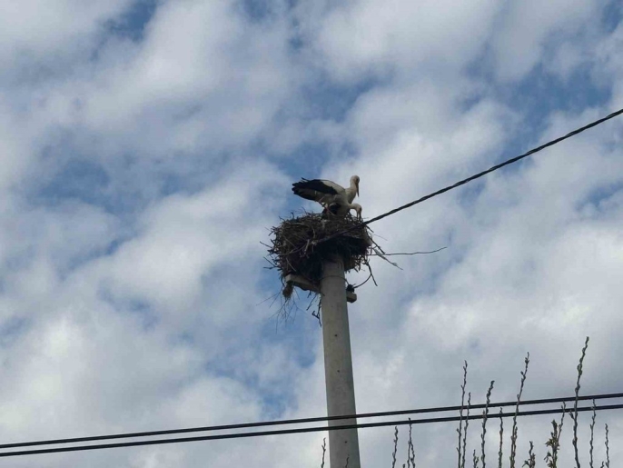 Aydın'ın Bozdoğan ilçesinde havaların ısınmasıyla birlikte, baharın en güzel habercilerinden biri olan leylekler, yuvalarına geri döndü.