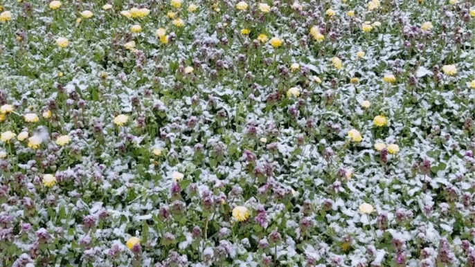 Bolu'nun Mudurnu ilçesinde, baharın gelişiyle birlikte açan renkli çiçekler, beklenmedik bir kar yağışıyla adeta beyaza büründü. Bu durum, doğanın sunduğu eşsiz ve kartpostallık manzaralar oluşturdu.