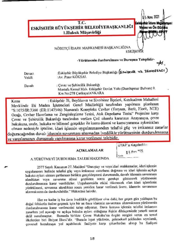 Enerji ve Tabii Kaynaklar Bakanı Alparslan Bayraktar, Eskişehir'de hayata geçirilmesi planlanan Nadir Toprak Elementleri Tesisi'nin önündeki siyasi engelleri sert bir dille eleştirdi. Özellikle CHP'li Eskişehir Büyükşehir Belediyesi'nin, Çevre, Şehircilik ve İklim Değişikliği Bakanlığı tarafından ÇED raporu onaylanmış projeye dava açmasını "iki yüzlü bir politika" olarak nitelendiren Bayraktar, bu durumun ülkenin stratejik hedeflerine zarar verdiğini belirtti.