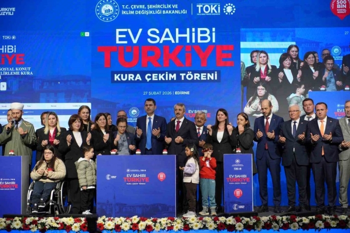 Çevre, Şehircilik ve İklim Değişikliği Bakanı Murat Kurum, Edirne’de düzenlenen ’Ev Sahibi Türkiye Kura Çekim Töreni’nde önemli açıklamalarda bulundu. Bakan Kurum, "11 ilimizde eş zamanlı çalışarak, bir Avrupa ülkesi büyüklüğündeki alanı yeniden inşa ettik. 455 bin yuvamızı, 2 yıl gibi kısa bir sürede tamamlayarak depremzede kardeşlerimize teslim ettik. Söz verdiğimiz gibi konutlarımızı sahiplerine ulaştırdık. Asrın inşası, Türkiye’nin başarısıdır. Asrın inşası, Türkiye’nin yüz akıdır" dedi.