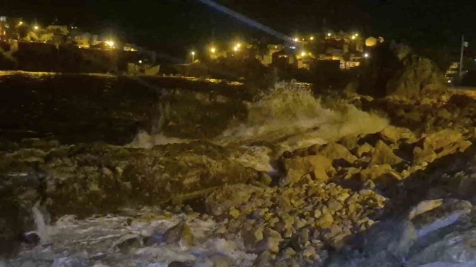Gün boyunca kayalıklara çarpan dalgaların yüksekliği 4 metreye kadar çıkarken, gece yarısı fırtınanın şiddetlenmesiyle birlikte dalgalar yaklaşık 8 metreye ulaştı. Peş peşe gelen ve irili ufaklı kayaları adeta yutan dalgalar, görsel bir şölen sundu.