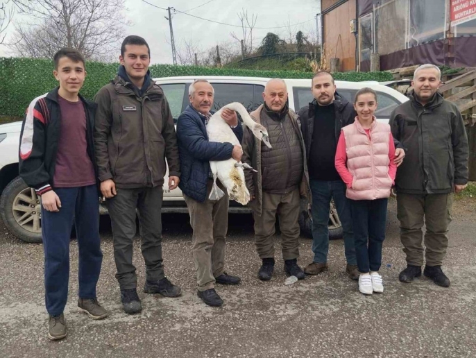 Bartın'ın Mugada Sahili'nde bir köy muhtarı tarafından bulunan ve yaralı olduğu tespit edilen bir kuğu, Doğa Koruma ve Milli Parklar Müdürlüğü ekiplerine teslim edildi. Güvenli bir şekilde koruma altına alınan kuğunun, tedavi edildikten sonra yeniden doğal yaşam alanına bırakılacağı belirtildi.