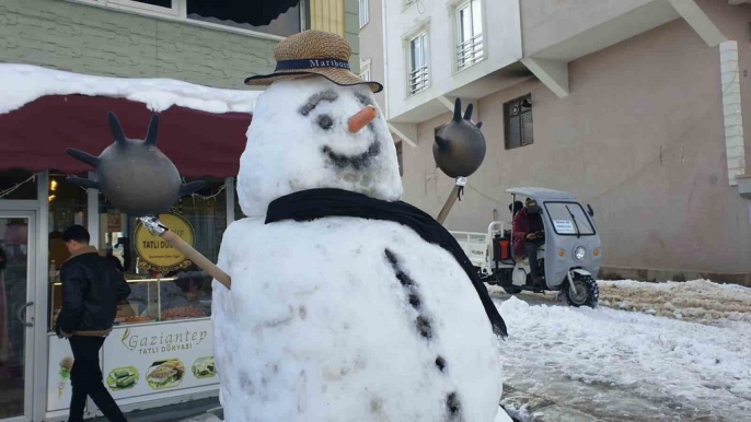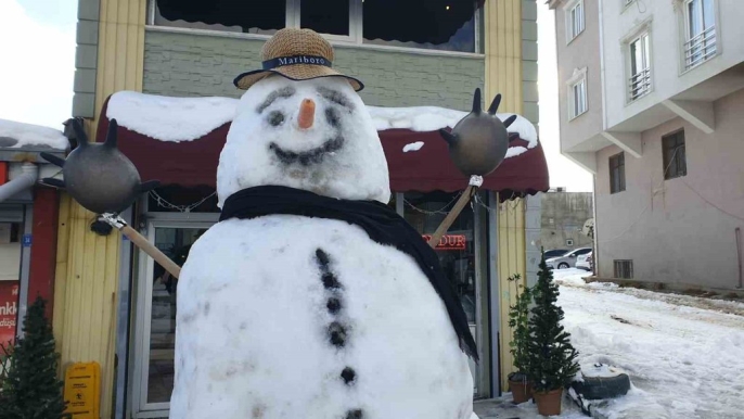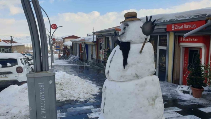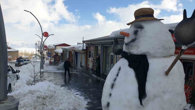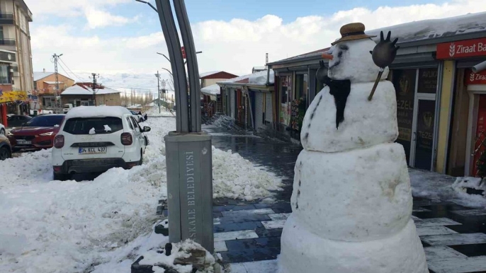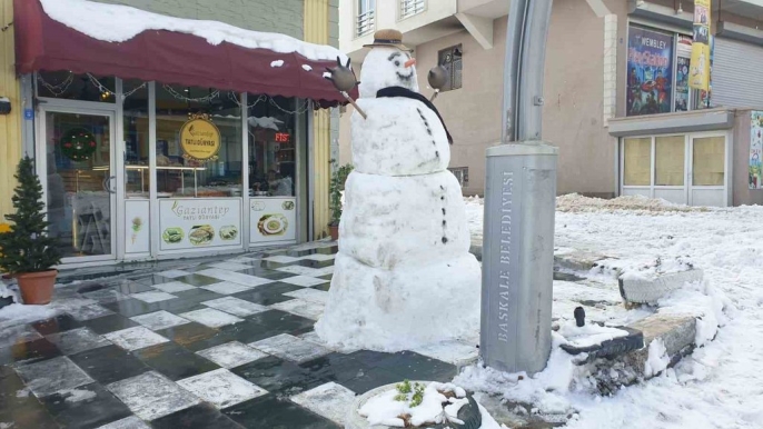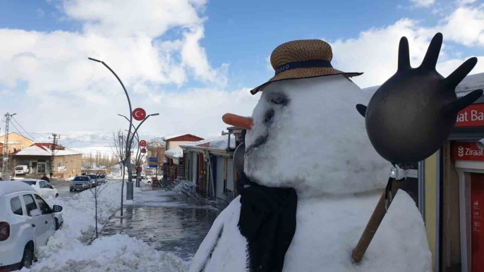 Başkale'de kar temizliği hız kesmeden sürüyor, esnaf kardan adamla moral buluyor