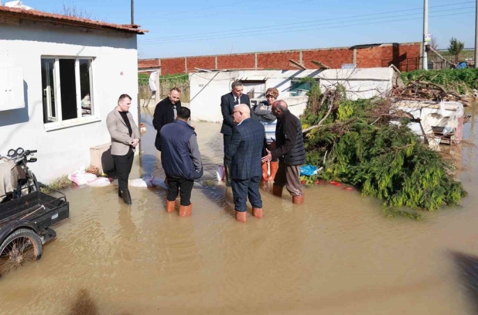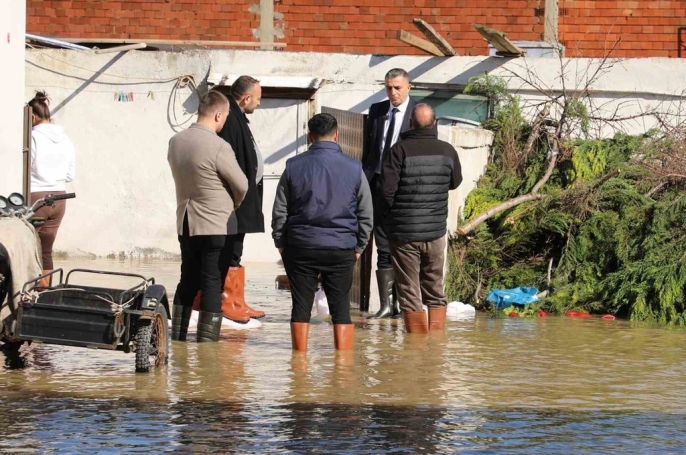 Başkan Şimşek, su baskınlarında çizmeleriyle inceleme yaptı