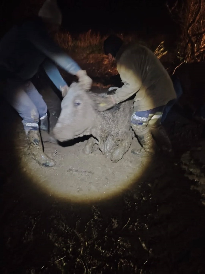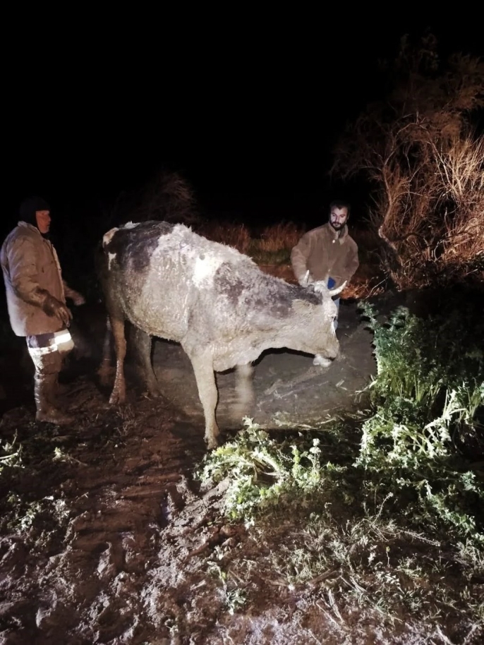Aydın'ın Germencik ilçesinde, Uzunkum Mahallesi'nde bulunan Menderes Nehri kenarındaki bataklık alana saplanan bir büyükbaş hayvan, belediye zabıta ve jandarma ekiplerinin başarılı operasyonuyla kurtarıldı.