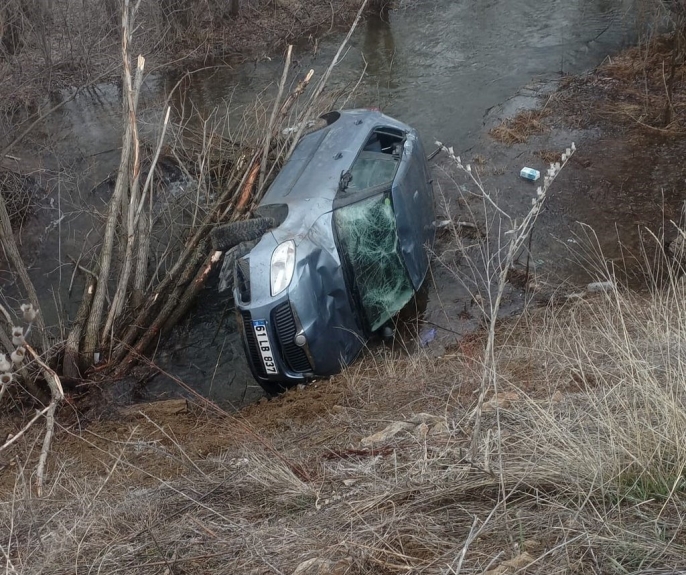 Bayburt yakınlarında meydana gelen kazada, kontrolden çıkarak Akşar Deresi’ne uçan otomobilin sürücüsü hafif yaralandı.