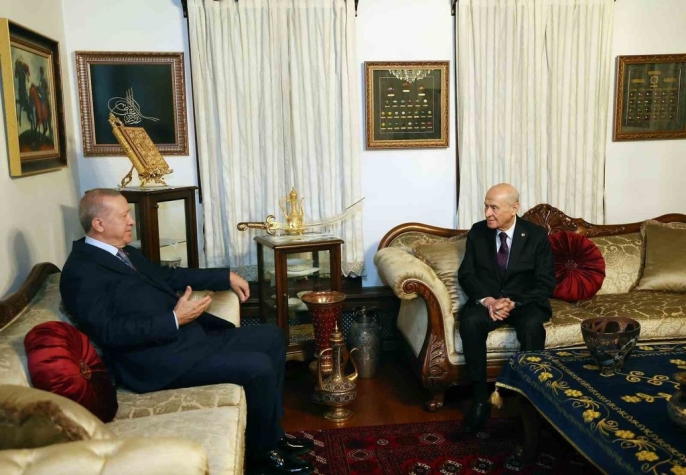 MHP Genel Başkanı Devlet Bahçeli, Cumhurbaşkanı Erdoğan'ı konutunun girişinde karşıladı. Yaklaşık 40 dakika süren bu kritik görüşmeye, Cumhurbaşkanlığı İletişim Başkanı Burhanettin Duran, Cumhurbaşkanlığı Özel Kalem Müdürü Hasan Doğan ve Cumhurbaşkanı Dış Politika ve Güvenlik Başdanışmanı Akif Çağatay Kılıç da eşlik etti. Bu heyetin katılımı, görüşmenin gündeminin sadece ikili bir temas olmadığını düşündürüyor.